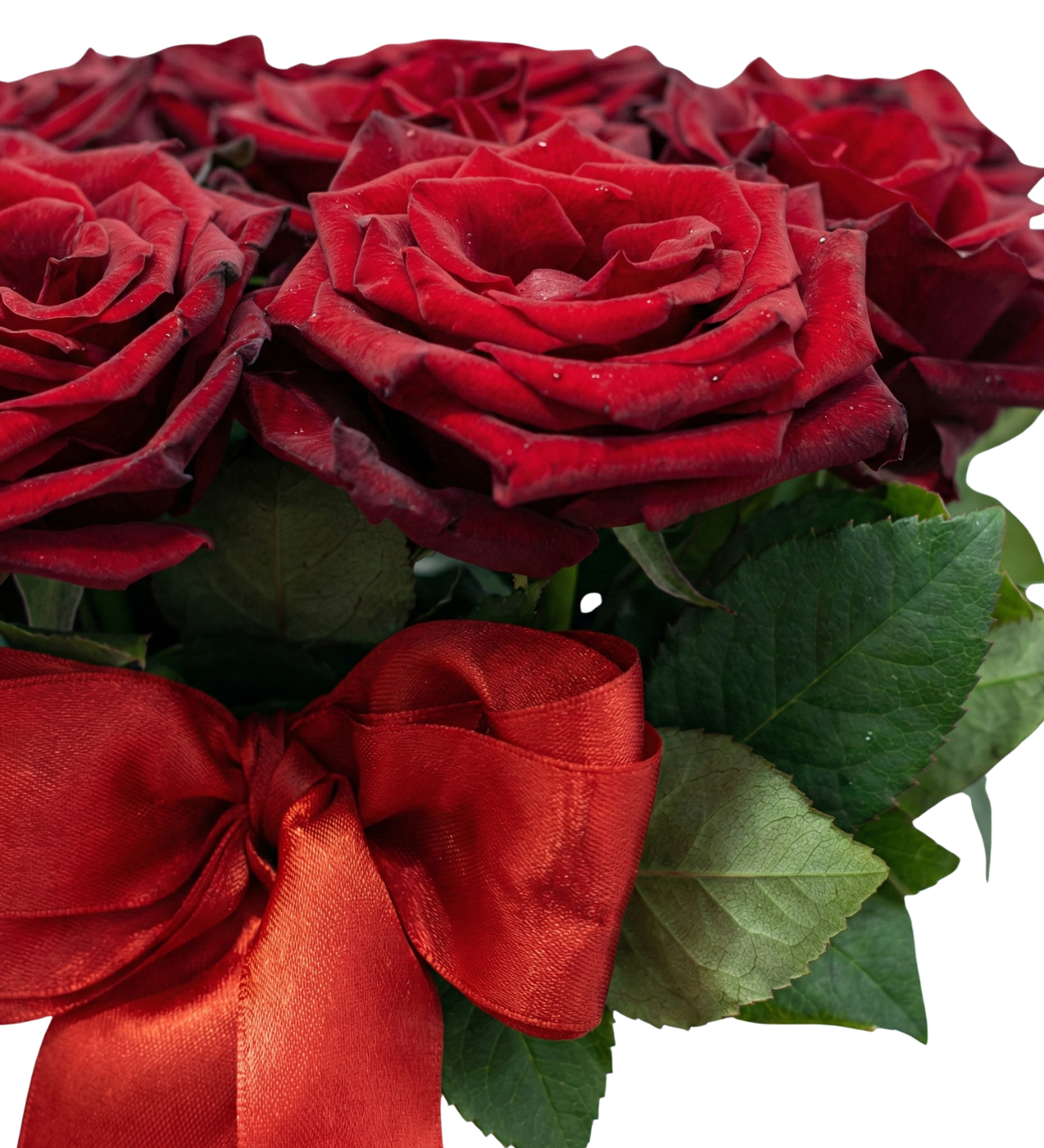 Taze ve canlı kırmızı güller (Tahmini 10 adet).