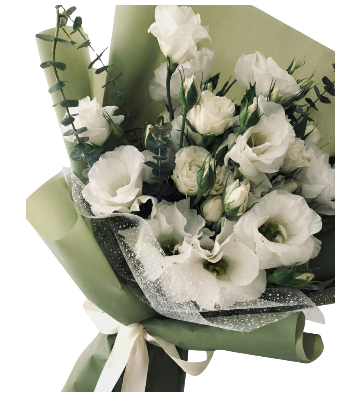 Ana Çiçek: 1. Kalite dolgun kandilli Beyaz Lisyantus (Eustoma).