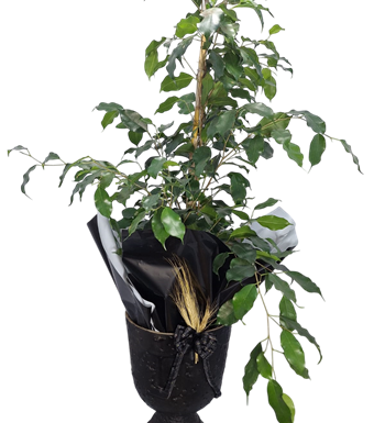 Ficus, siyah dekoratif kâğıtlar ile özel olarak sarılmış.