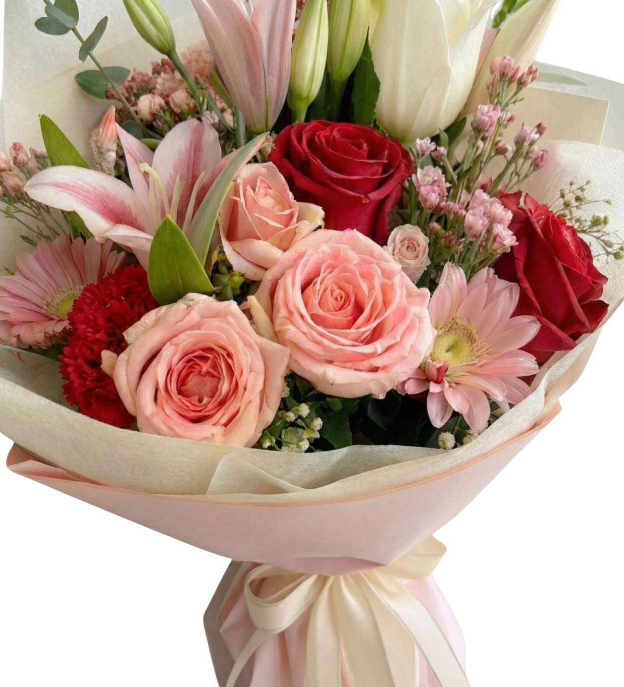 Ambalaj: Çiçeklerin renklerini ön plana çıkaran, modern kesim pastel tonlarda ithal kağıt ambalaj ve saten kurdele.
