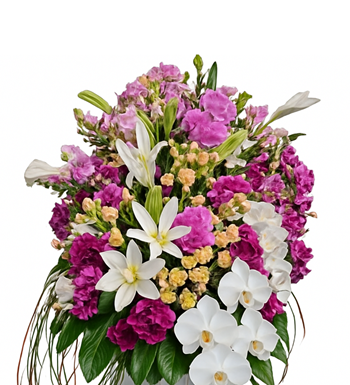 Asil Orkideler: Yoğun mor, fuşya ve beyaz Phalaenopsis orkideleri.