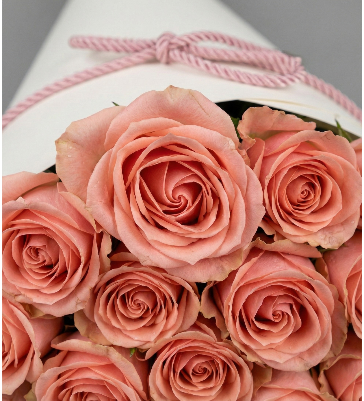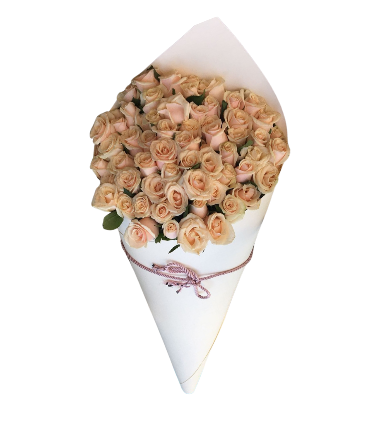 Ambalaj: Güllerin rengini boğmayan, mat dokulu ithal beyaz/krem tasarım kağıdı ve uyumlu kordon ip.
