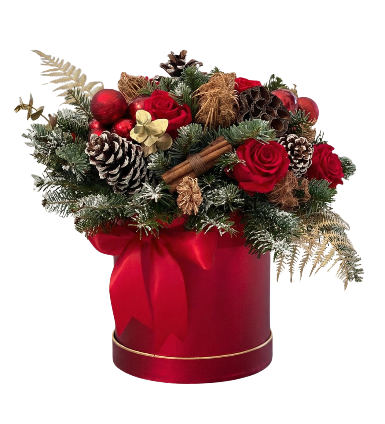 Çiçek: Aranjmanda dolgunluğuna göre tahmini 5-7 adet Kırmızı Gül (Ekvator veya yerli lüks gül) kullanılmaktadır.