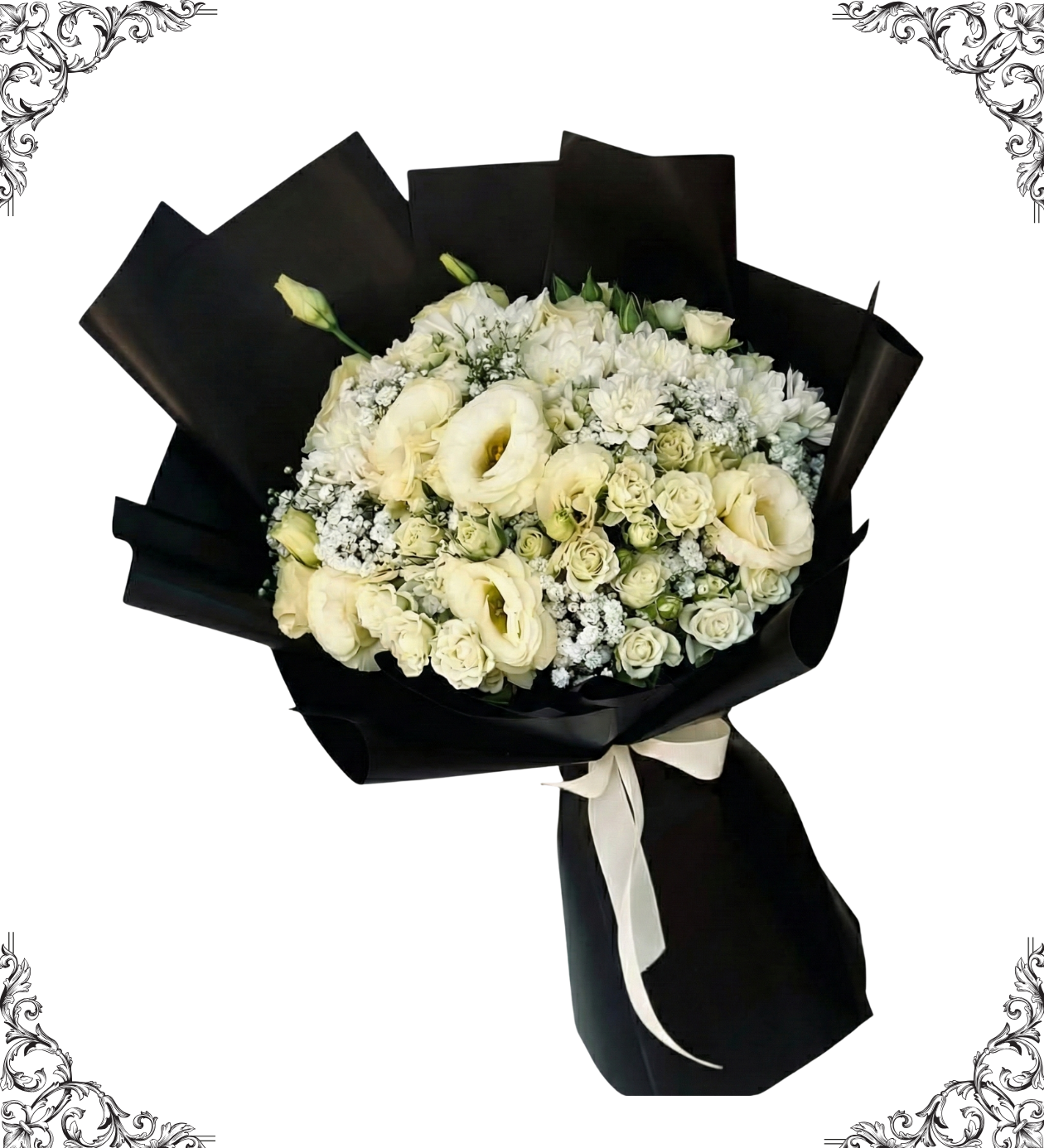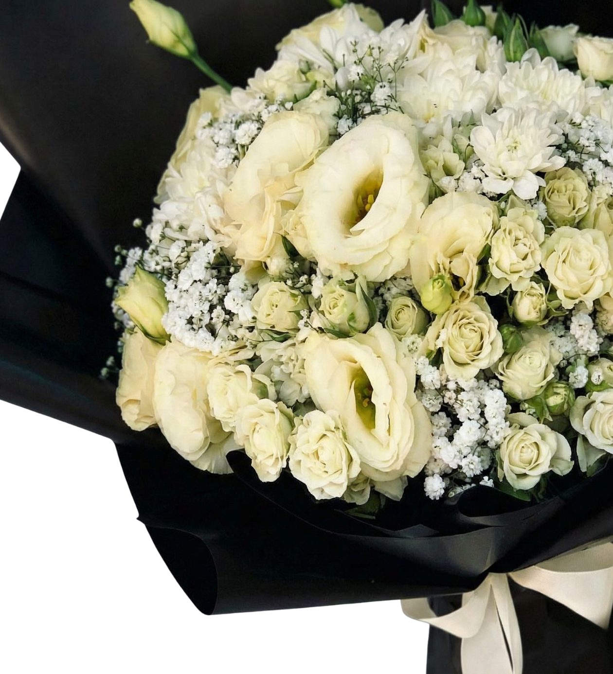 Yaklaşık 6-7 dal Beyaz Lisyantus: Buketin ana hacmini ve yumuşak dokusunu oluşturur.