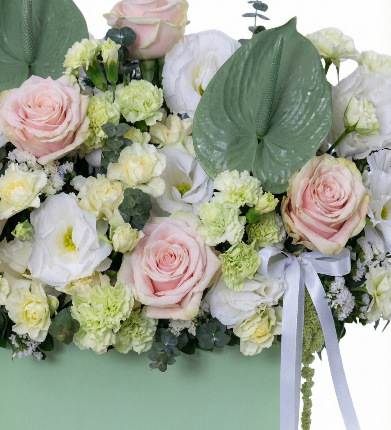 Yeşil Antoryumlar: Modern ve egzotik bir dokunuş sağlayan ana odak noktası.