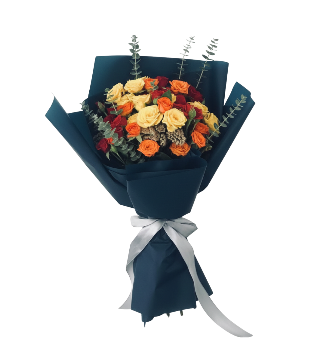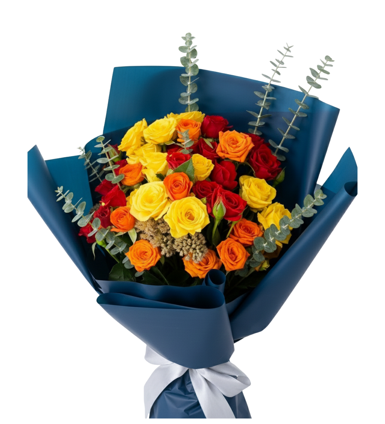 Çiçek Türleri: Premium Sarı, Turuncu ve Kırmızı Güller.