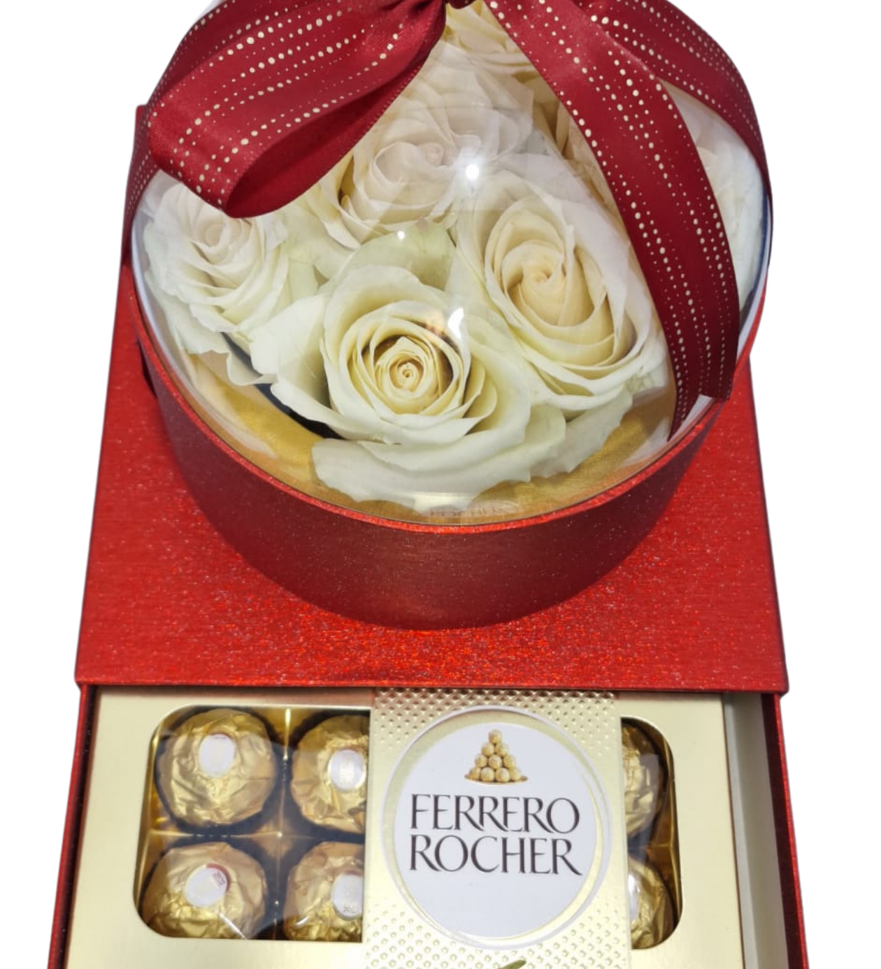 Çikolata: Alt çekmecede sunulan orijinal Ferrero Rocher dolgulu çikolatalar.