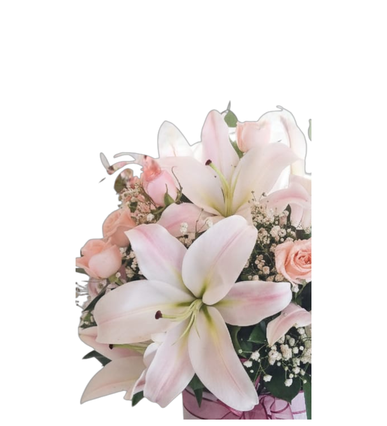 Cipsofilya (Gypsophila/Bebek Nefesi): Mini güller ve zambaklar arasında serpiştirilmiş küçük beyaz cipsofilyalar, aranjmana hafiflik, dolgunluk ve romantik bir hava katmıştır.